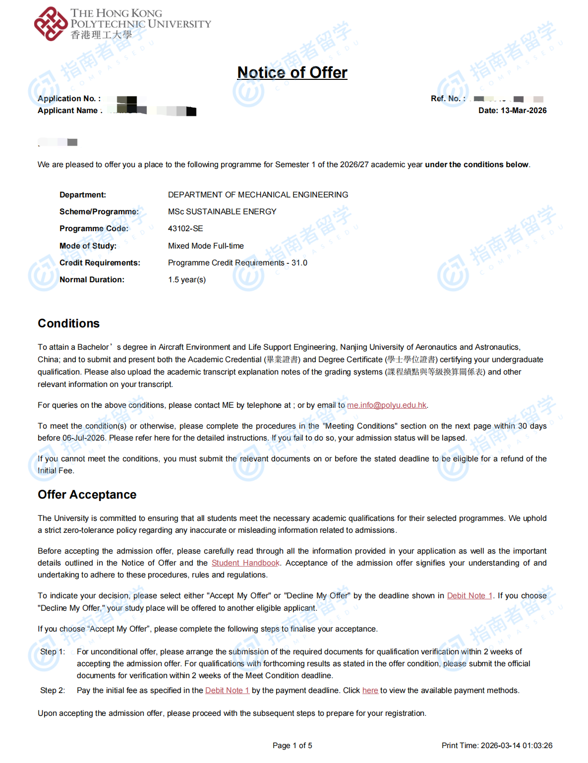 香港理工大学可持续能源理学硕士研究生offer一枚