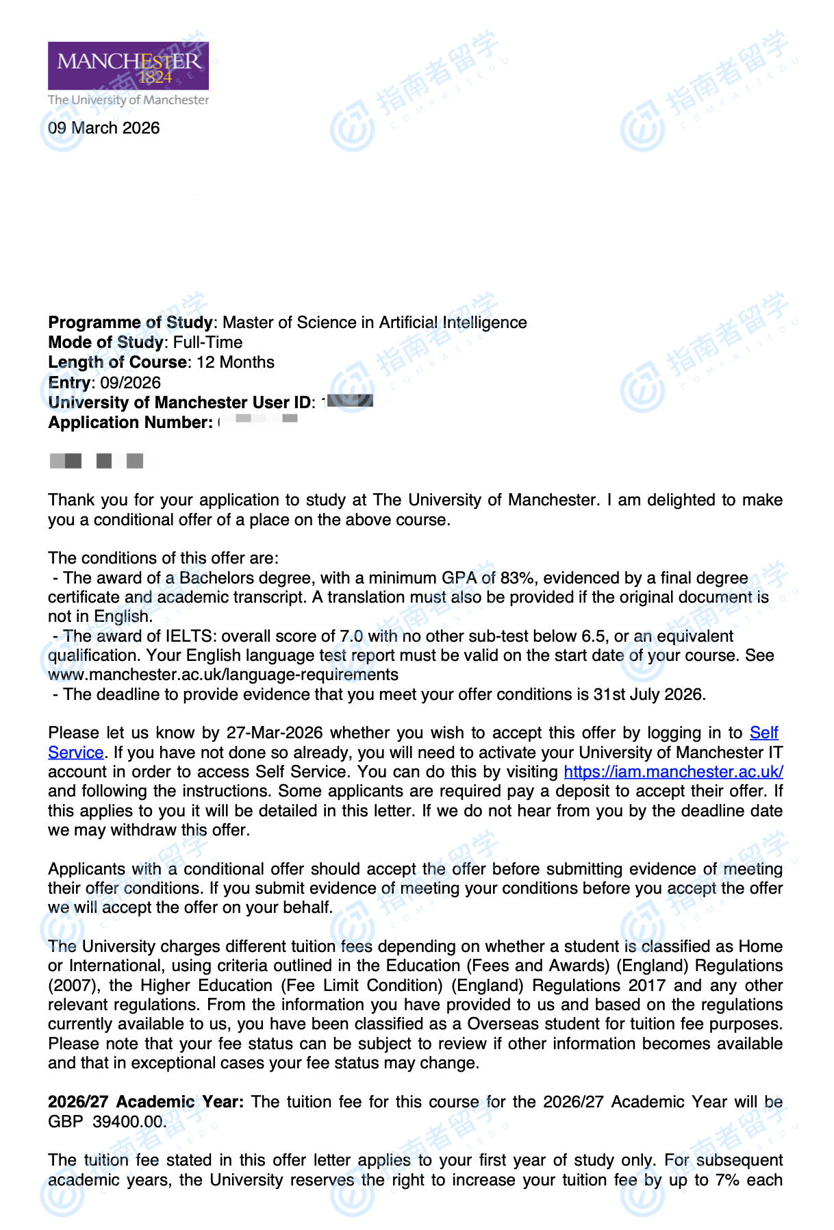 曼彻斯特大学人工智能理学硕士研究生offer一枚