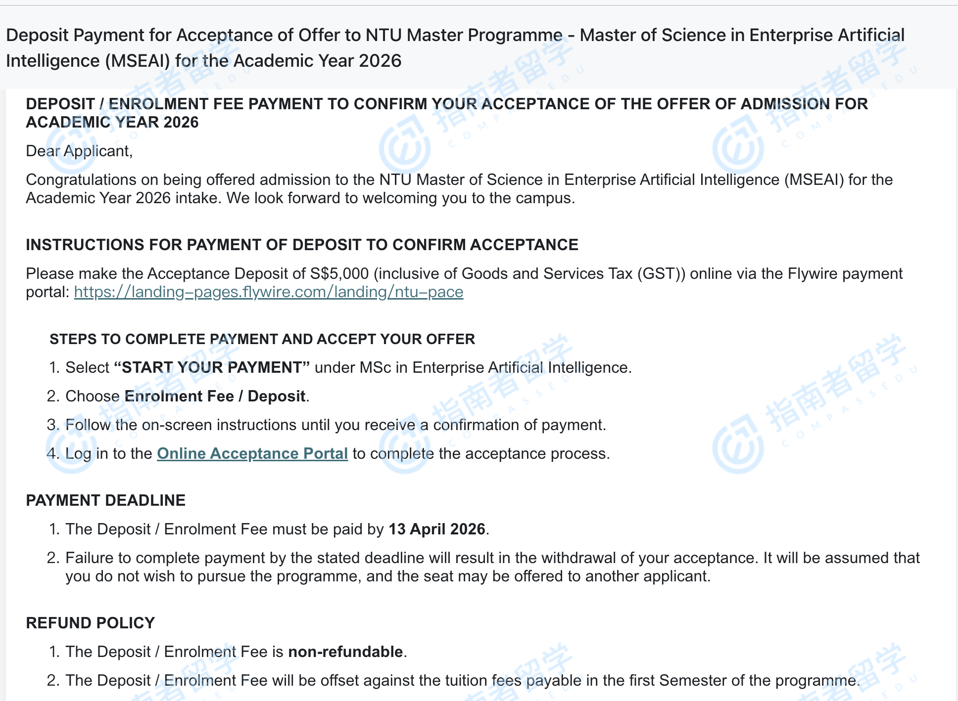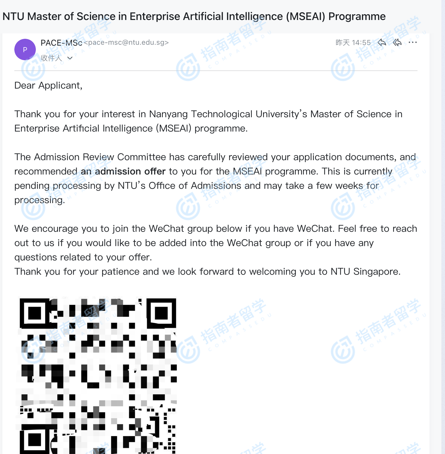 南洋理工大学企业人工智能理学硕士研究生offer一枚