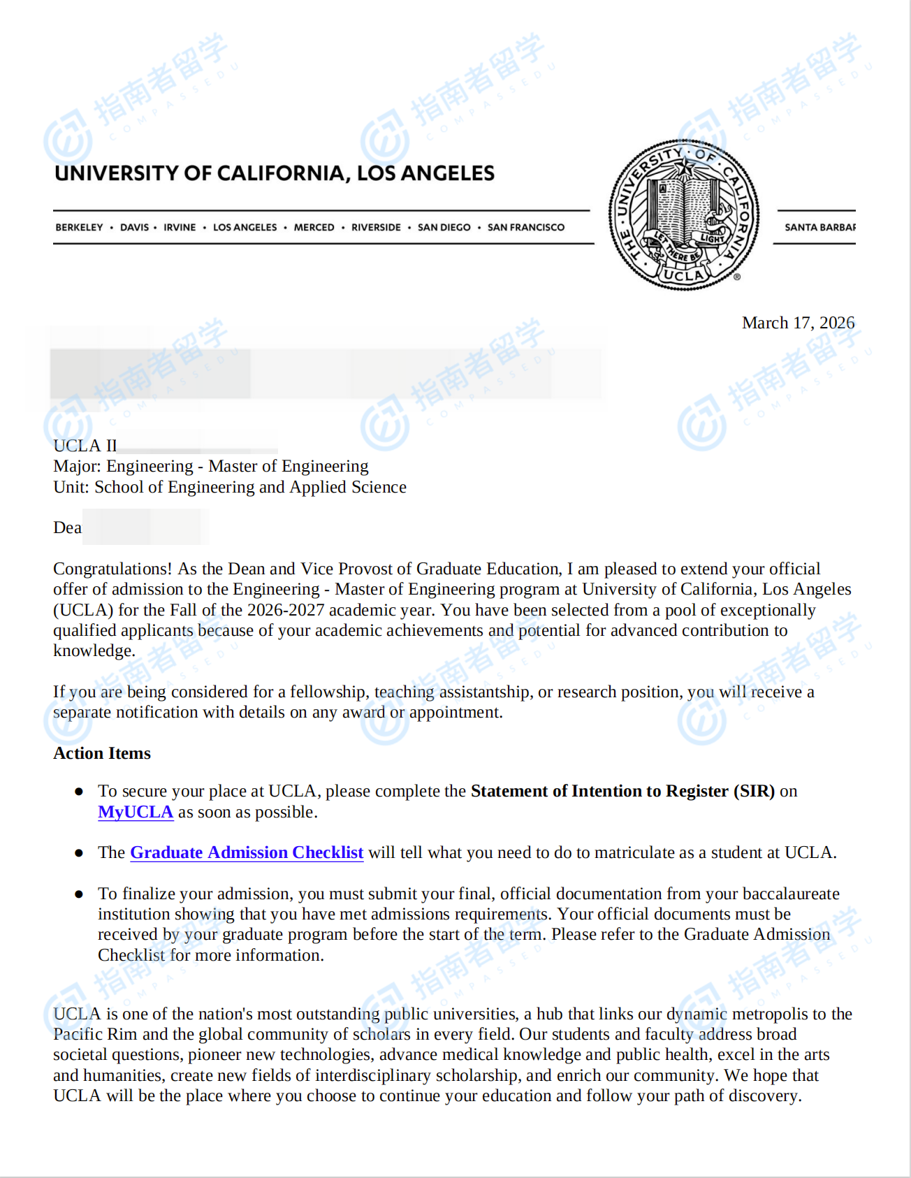 加州大学洛杉矶分校工程硕士:人工智能研究生offer一枚