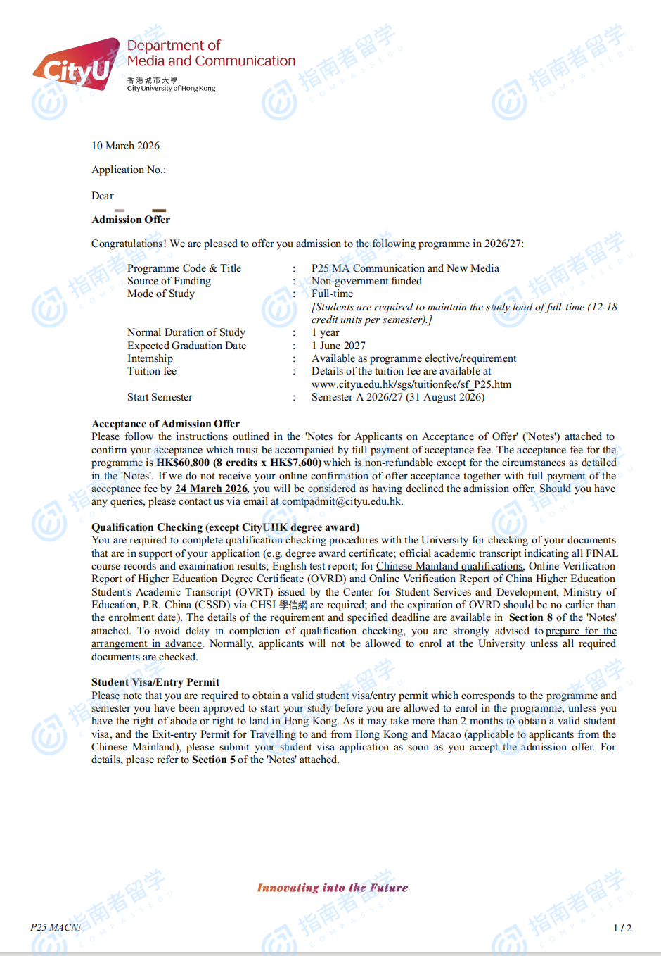 香港城市大学传播与新媒体文学硕士研究生offer一枚