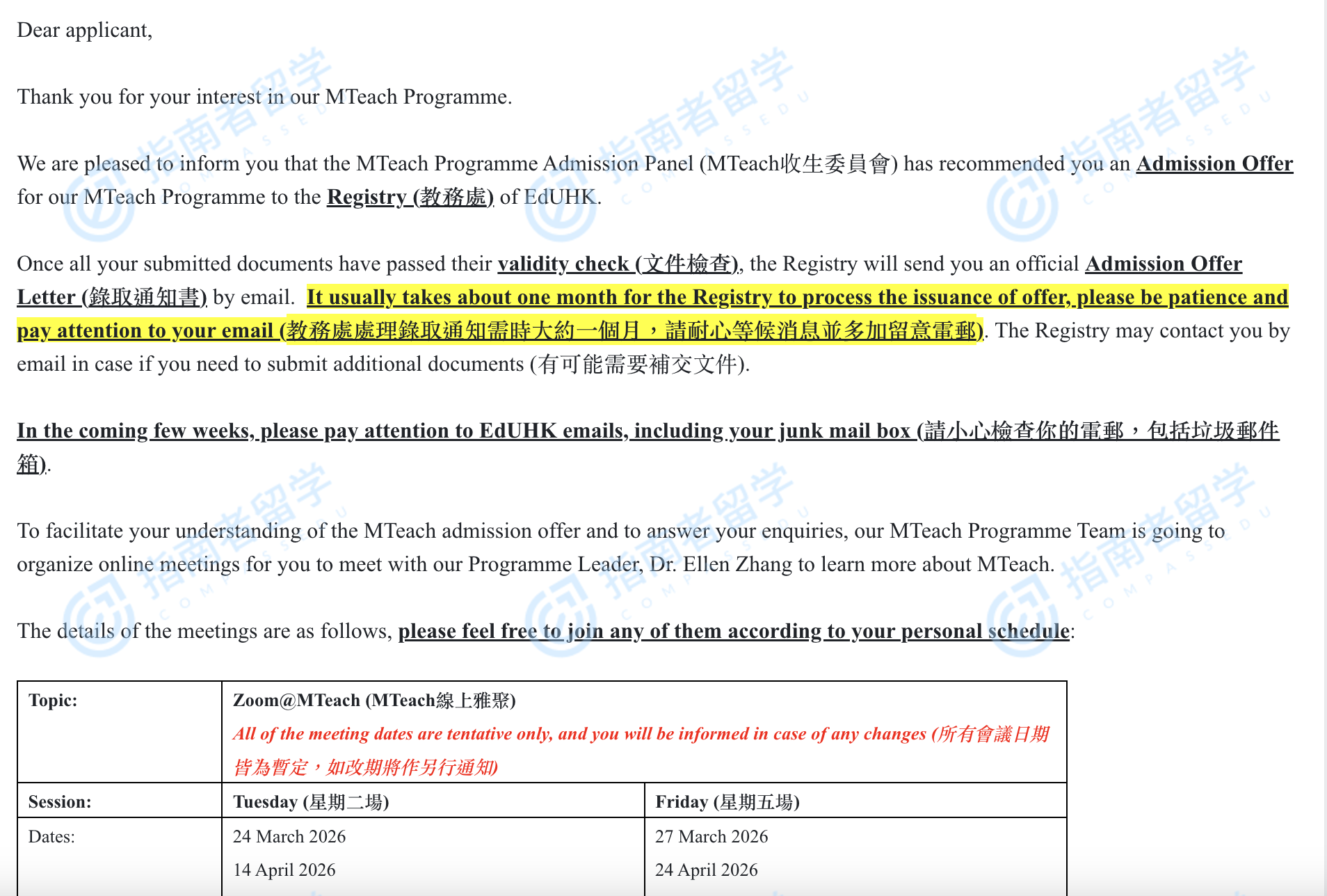 香港教育大学教学硕士研究生offer一枚