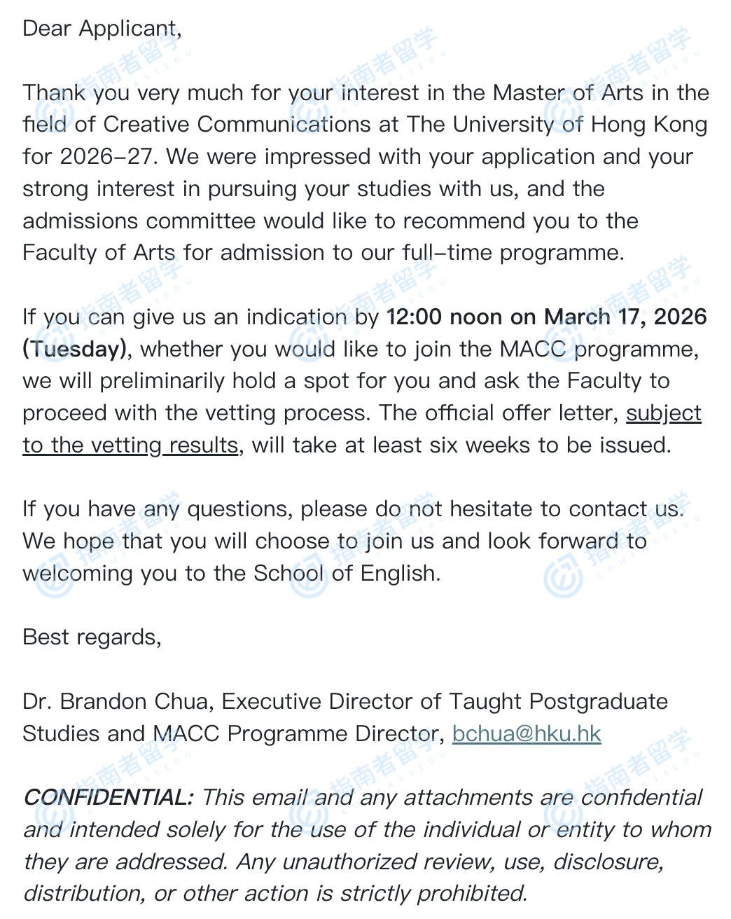 香港大学创意传播文学硕士研究生offer一枚