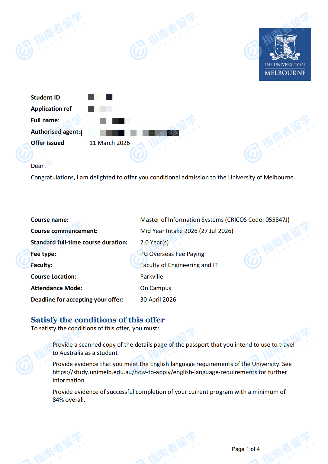 墨尔本大学信息系统硕士研究生offer一枚