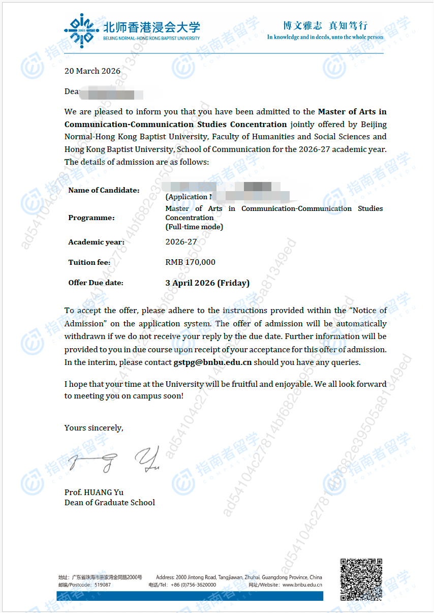 香港浸会大学传播学文学硕士 传理学专修(北师港浸大)研究生offer一枚