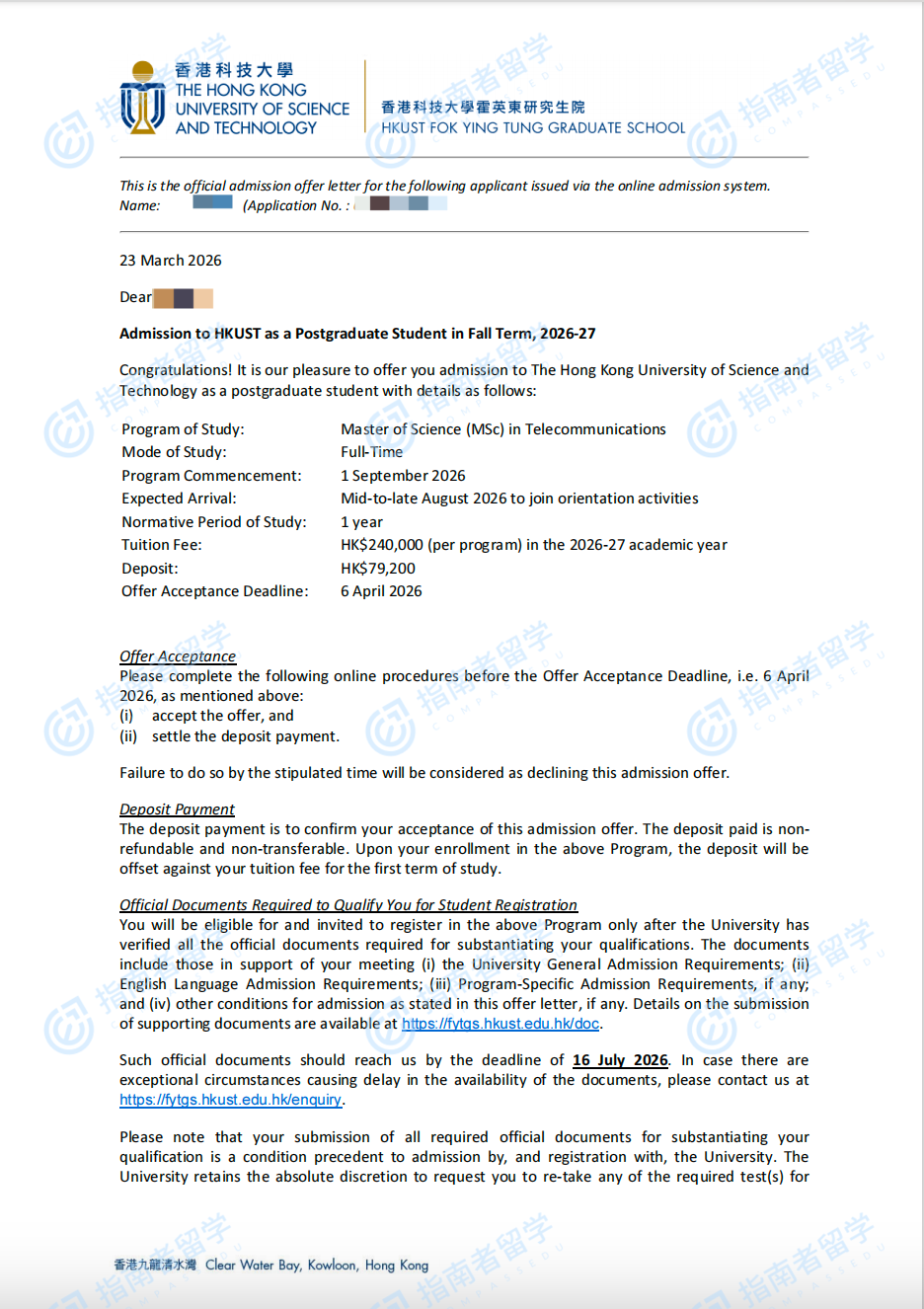 香港科技大学电信学理学硕士研究生offer一枚