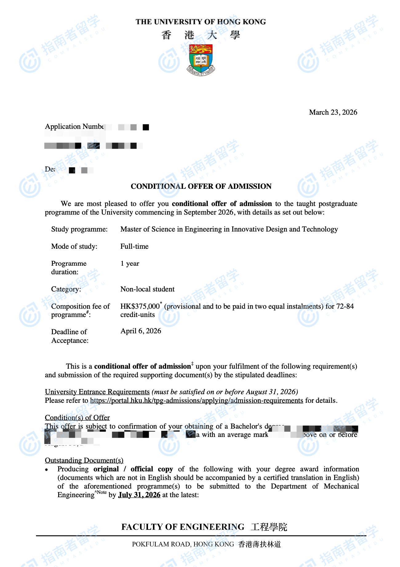 香港大学创新设计与科技(工程)理学硕士研究生offer一枚