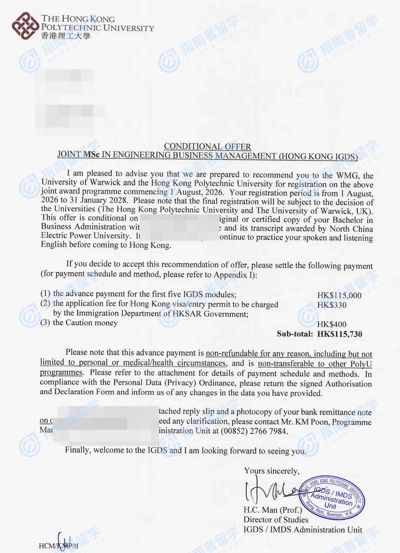 香港理工大学工程商业管理理学硕士研究生offer一枚