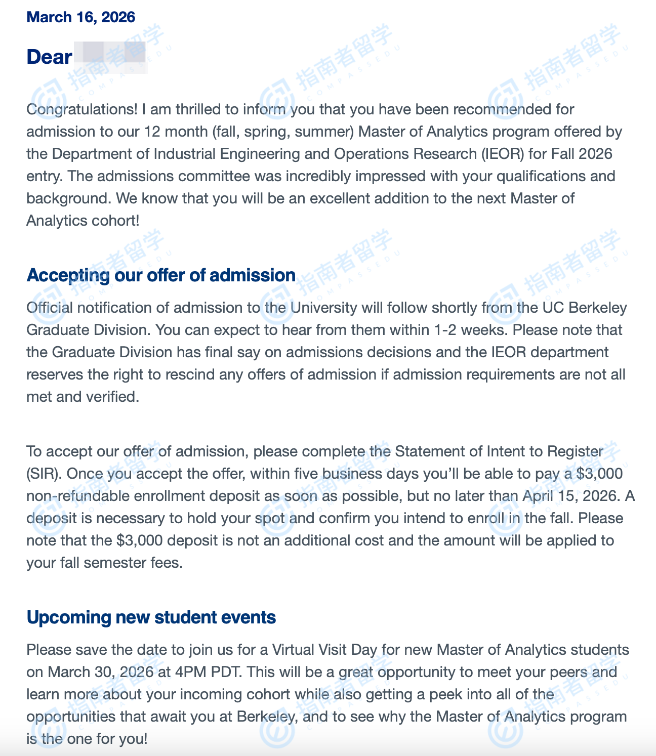加州大学伯克利分校分析学硕士研究生offer一枚