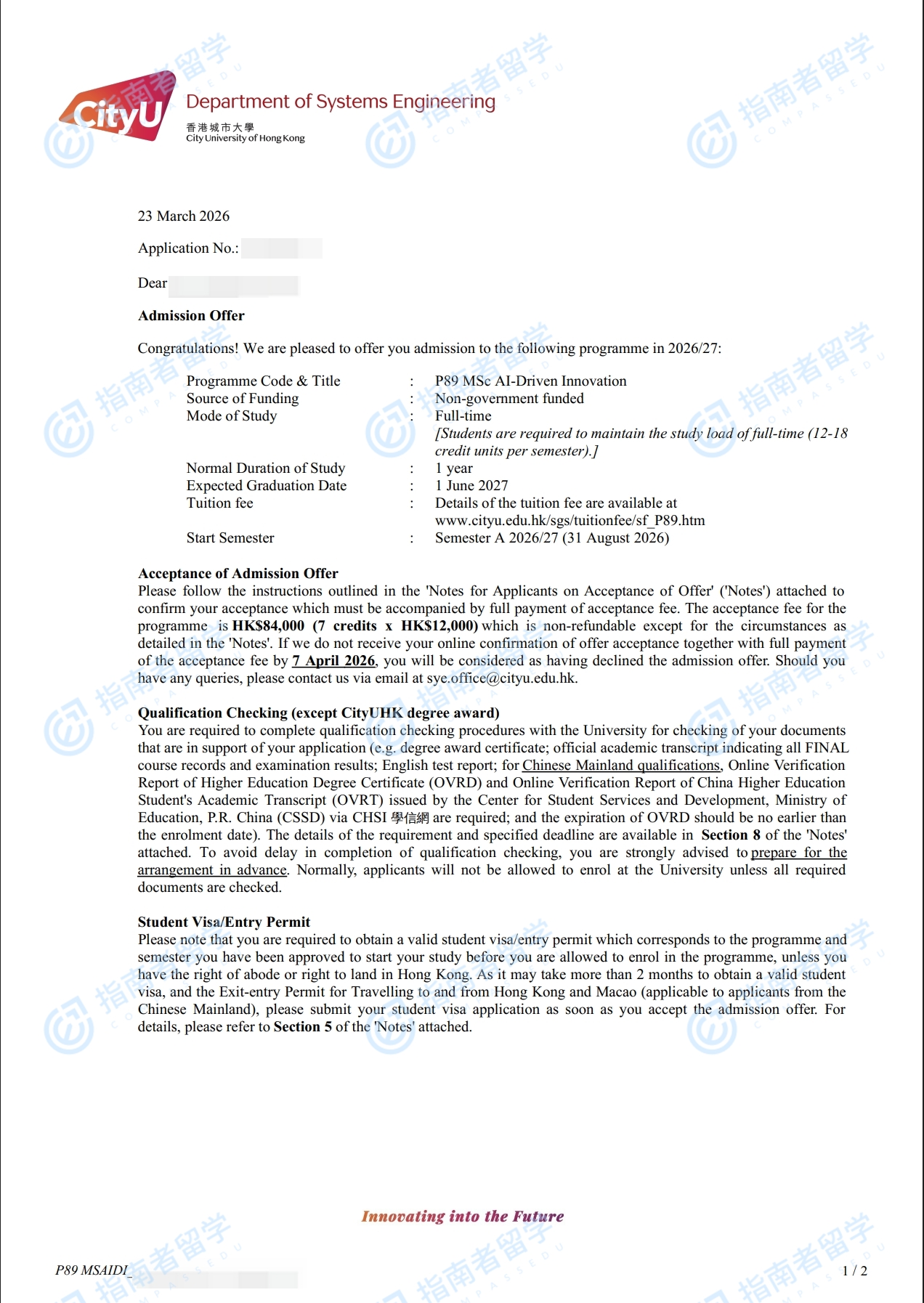 香港城市大学人工智能驱动创新理学硕士研究生offer一枚