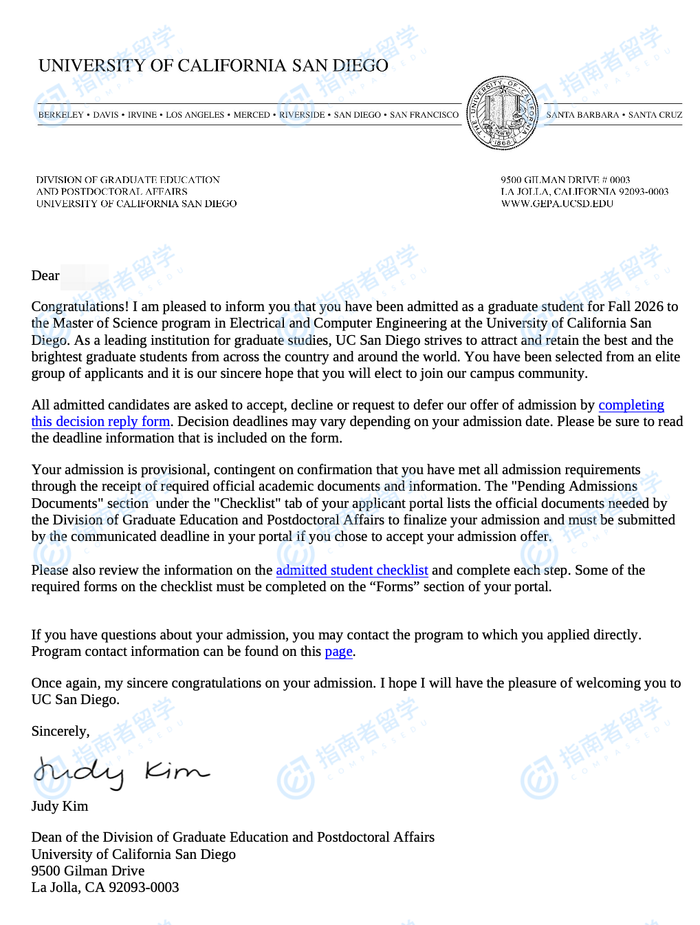 加州大学圣地亚哥分校电气与计算机工程硕士研究生offer一枚