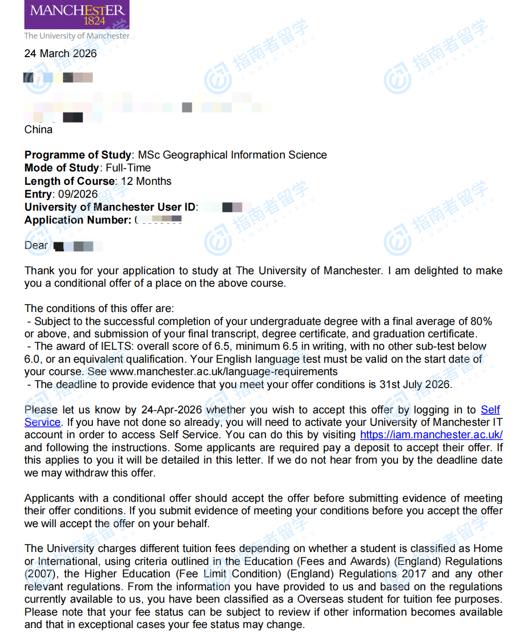曼彻斯特大学地理信息科学理学硕士研究生offer一枚