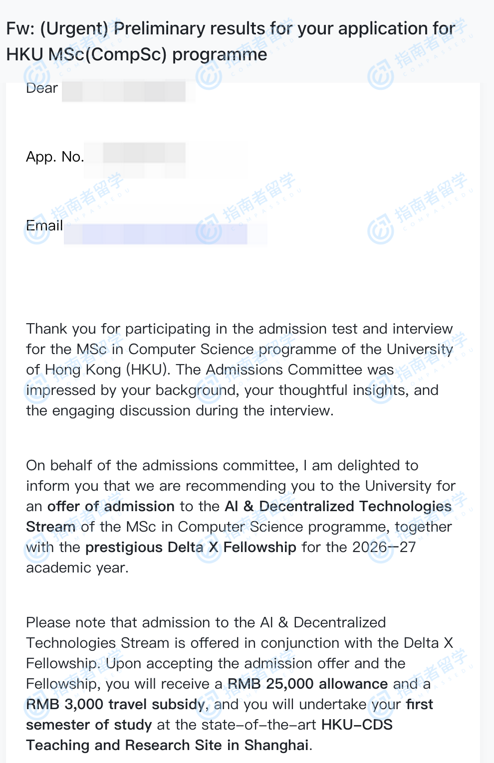 香港大学计算机科学理学硕士(人工智能&去中心化技术)研究生offer一枚
