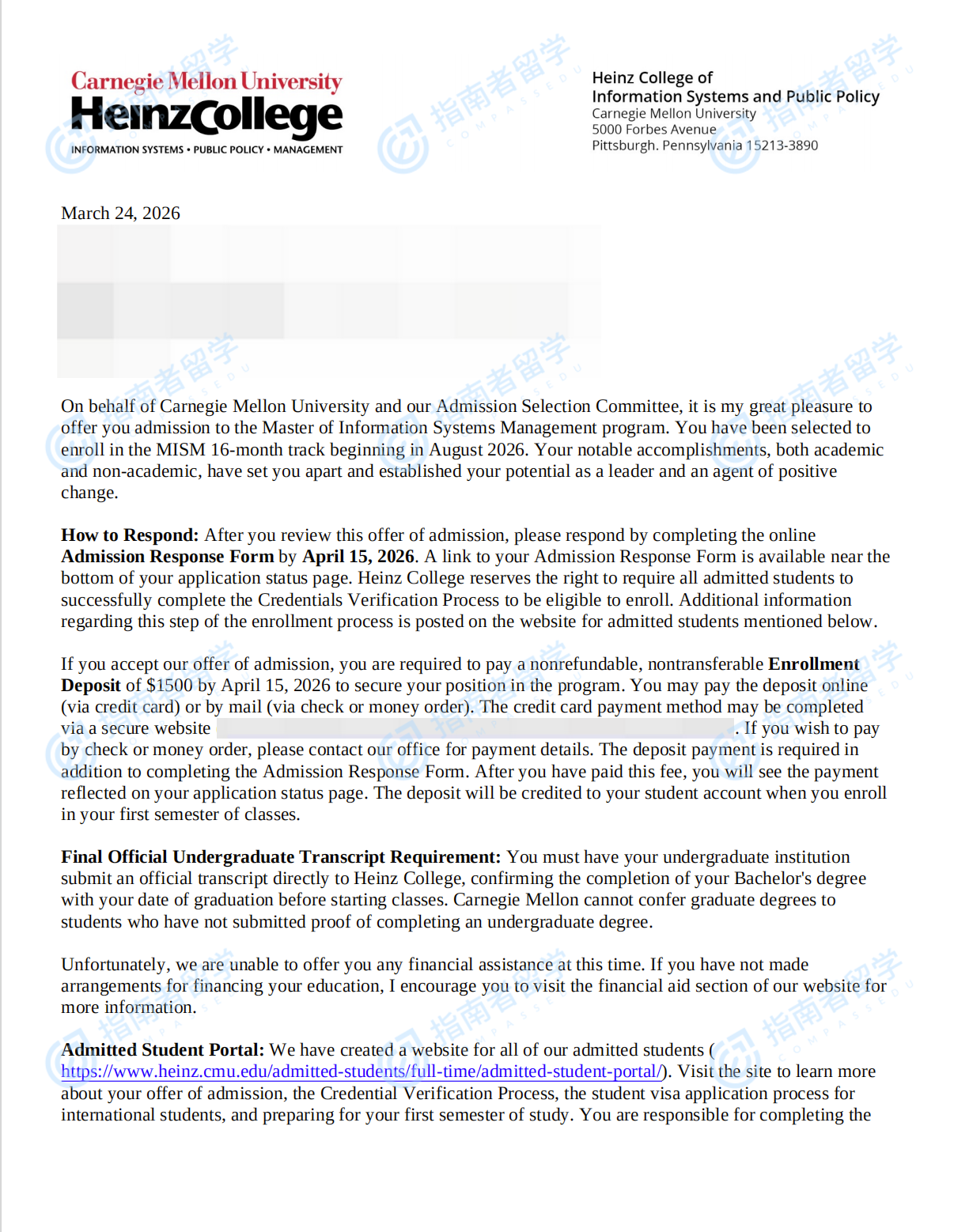 卡内基梅隆大学信息系统管理硕士研究生offer一枚