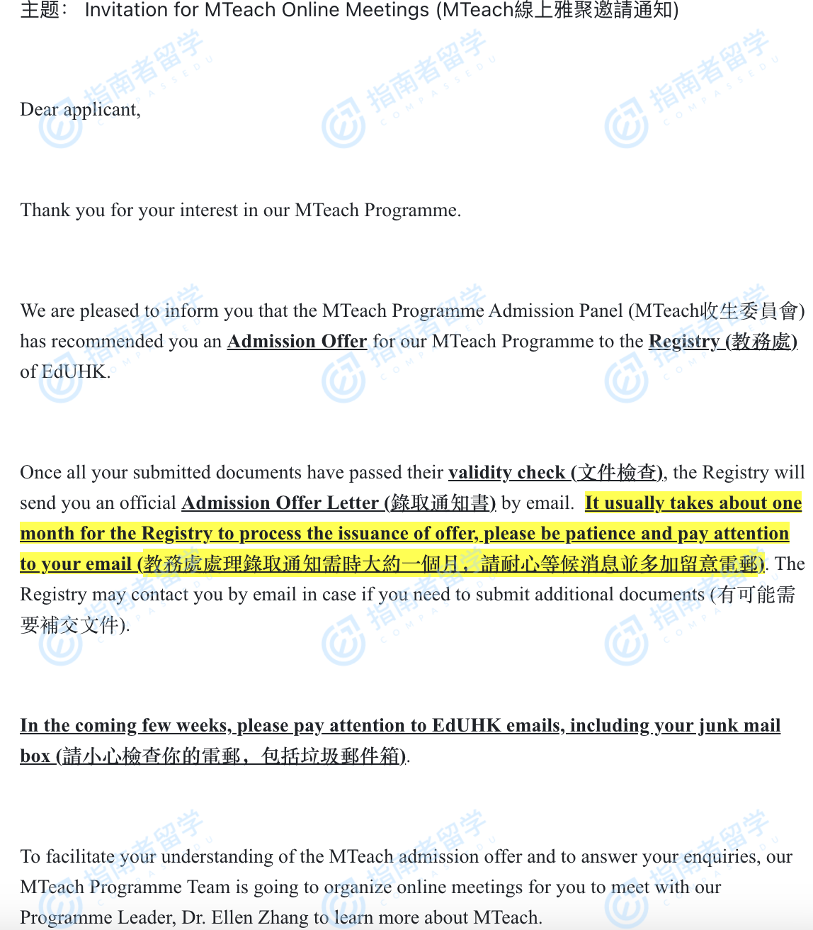 香港教育大学教学硕士研究生offer一枚