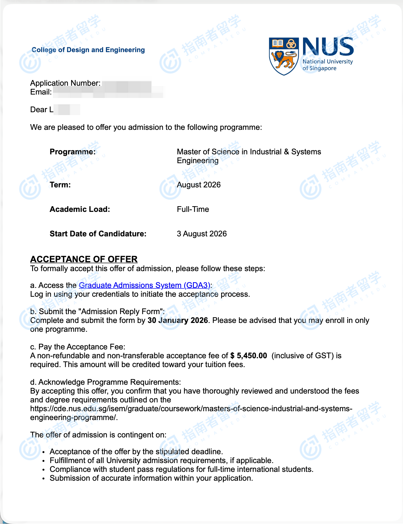 新加坡国立大学工业与系统工程理学硕士研究生offer一枚