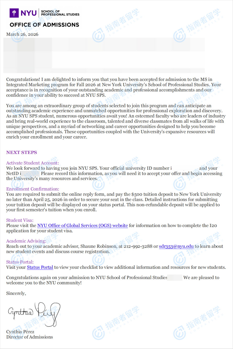 纽约大学整合营销硕士研究生offer一枚