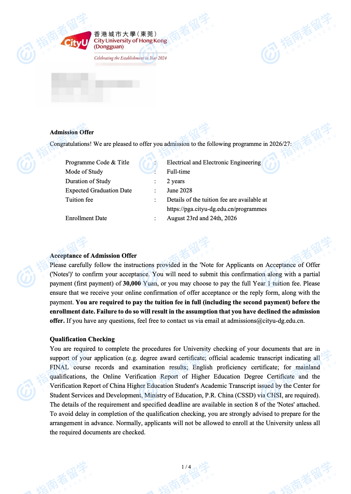 香港城市大学电子资讯工程学理学硕士(CityU-DG)研究生offer一枚