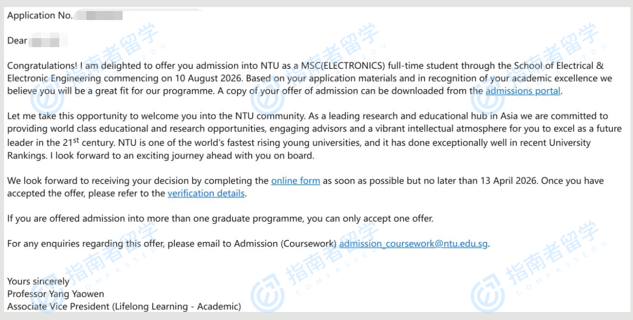 南洋理工大学集成电路与微电子学理学硕士研究生offer一枚