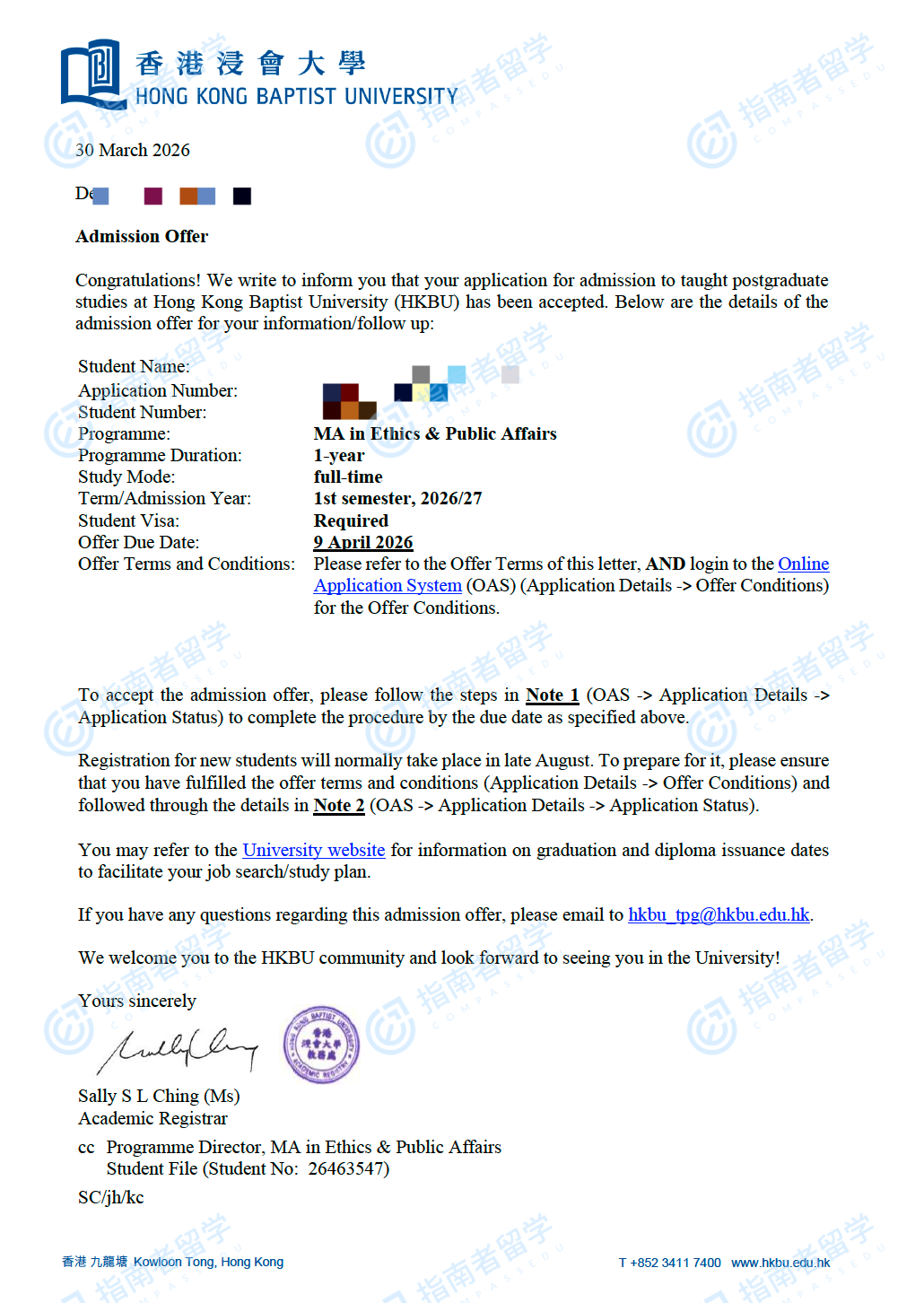 香港浸会大学公共事务伦理学文学硕士研究生offer一枚