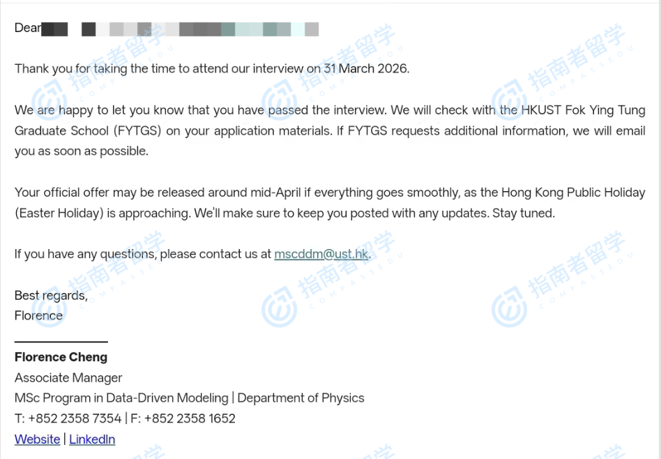 香港科技大学数据驱动建模理学硕士研究生offer一枚