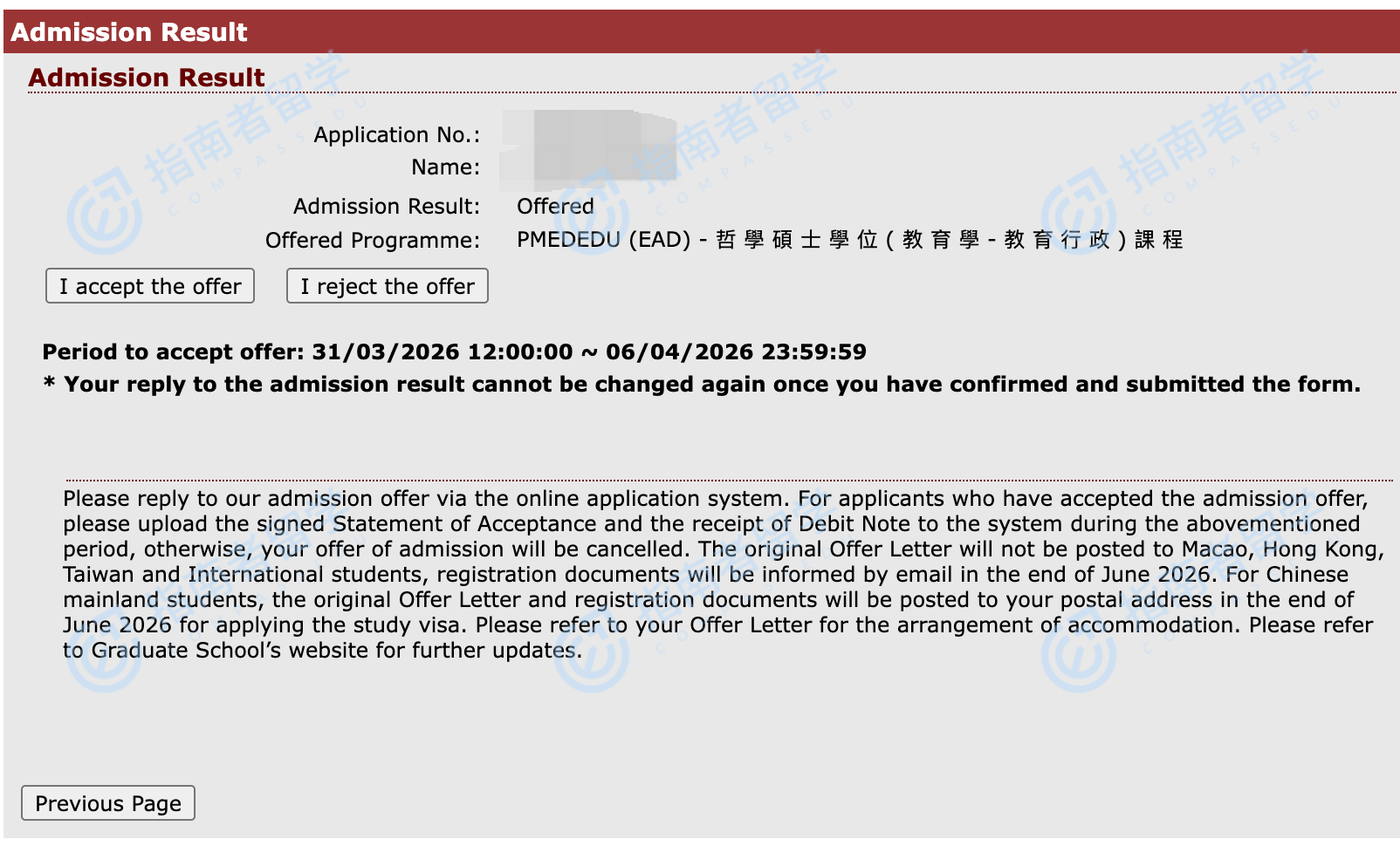 澳门大学教育学哲学硕士(教育行政)研究生offer一枚