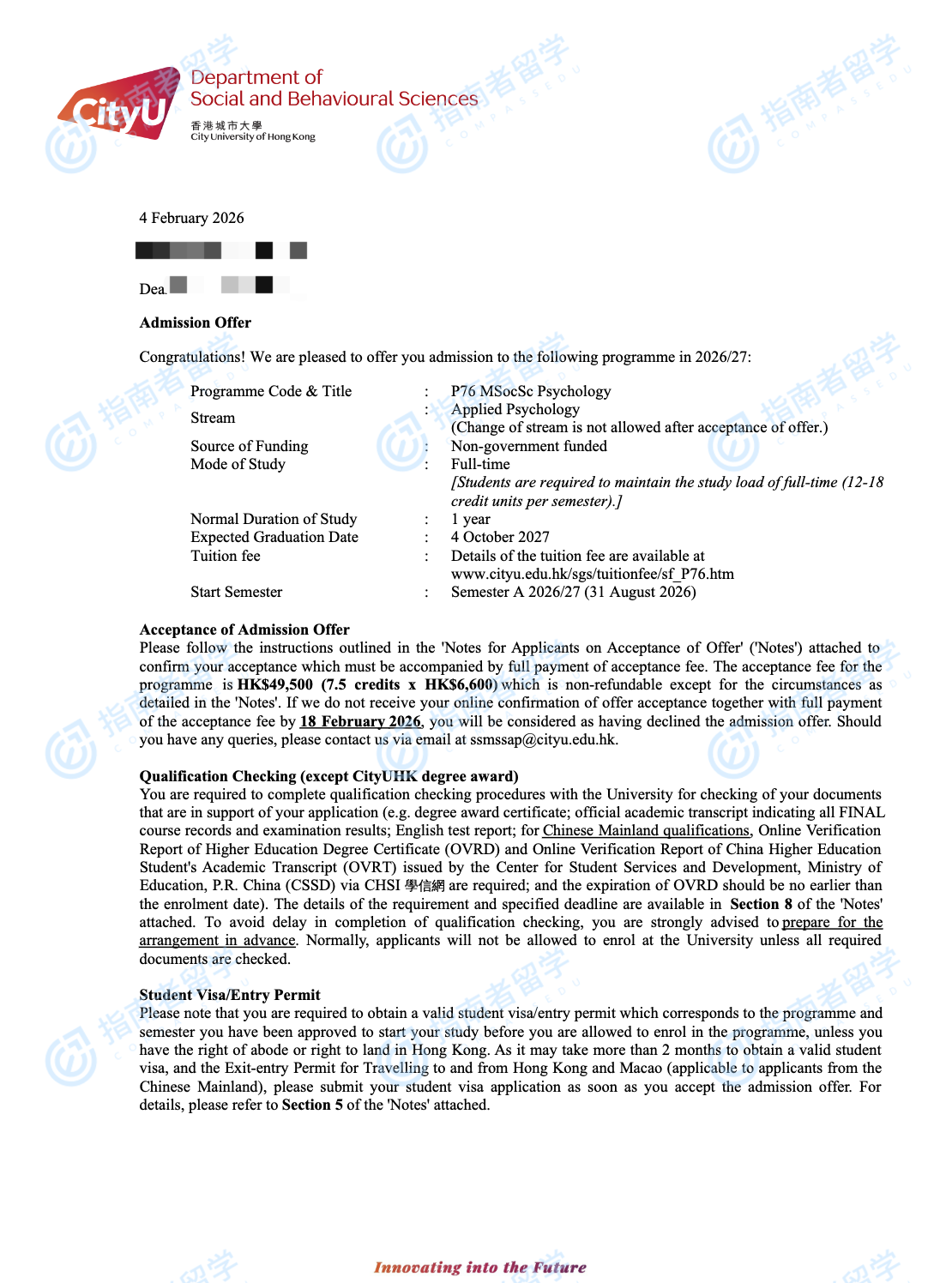 香港城市大学心理学社会科学硕士研究生offer一枚