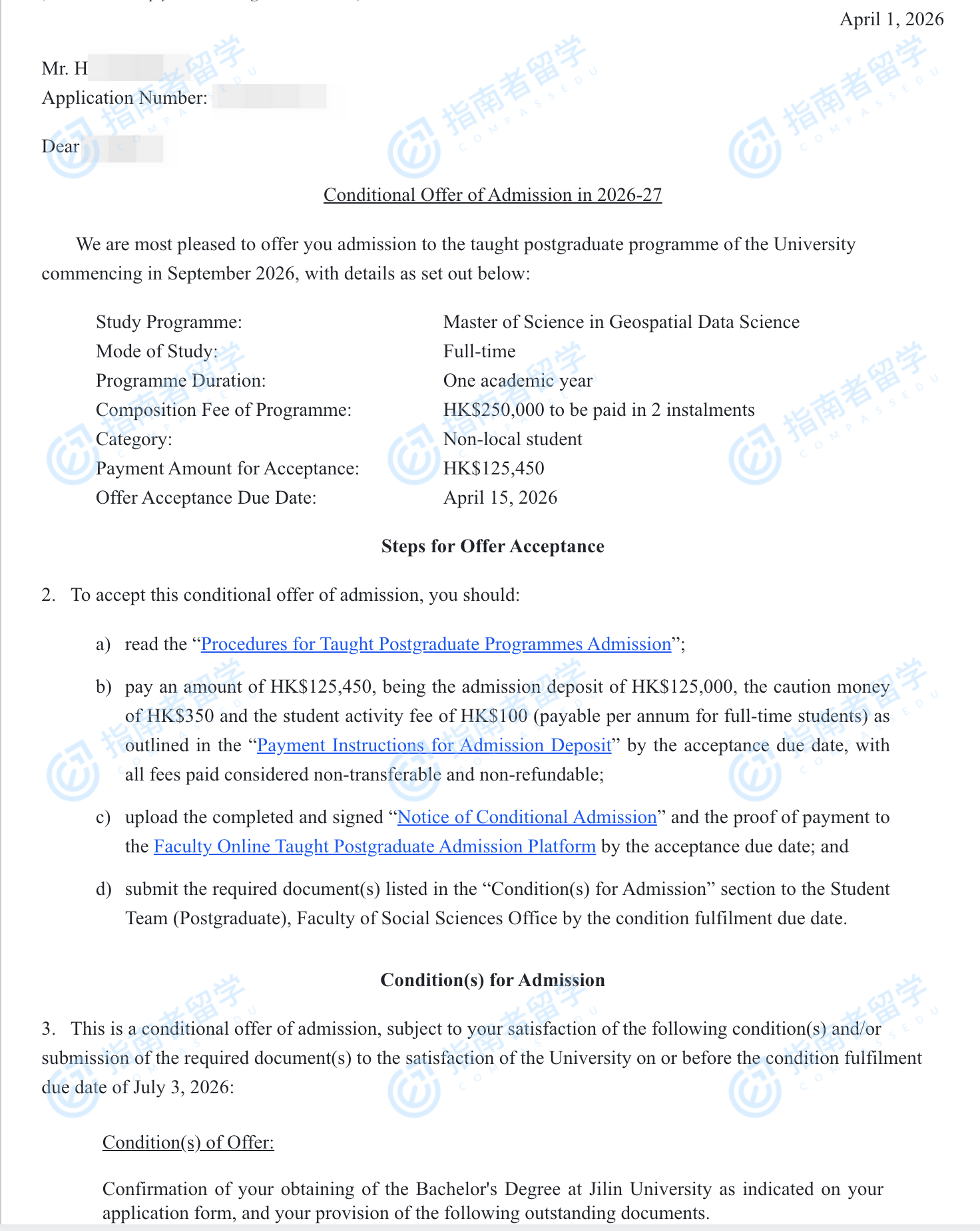 香港大学地理空间数据科学理学硕士研究生offer一枚