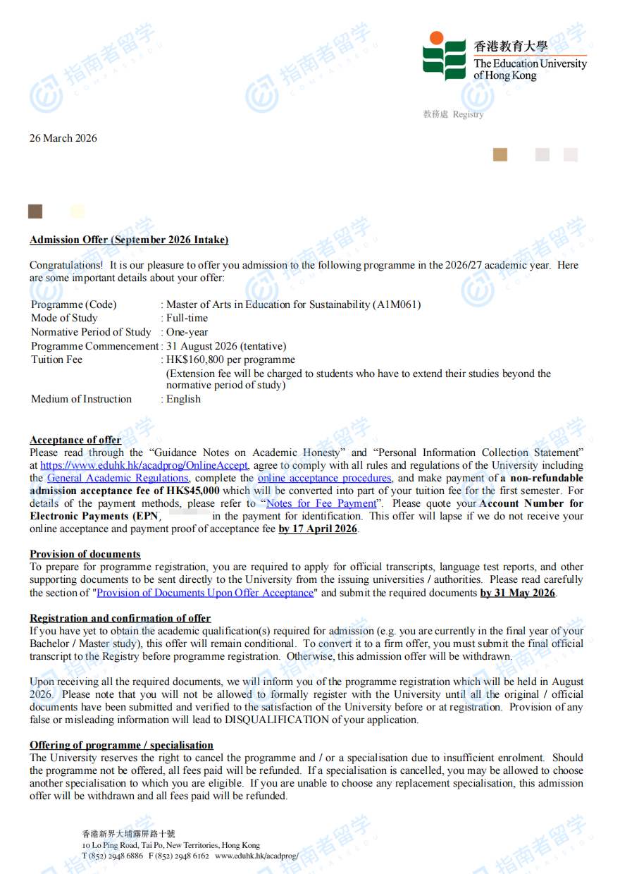 <p>香港教育学院可持续发展教育文学硕士课程由香港教育学院科学与环境学系开办,其中部分科目将由澳洲墨尔本皇家理工大学教授赴港任教。该课程透过实证为本的研究结果发展学生专业教授技巧;鼓励学生应用和实践专业知识,使学生能有效地进行批判性思考。收生对象为有志于对下一代或公众进行环境教育的本地及非本地在职教师、私人机构、政府及非政府组织的专业人士。其目的是培养学生对环境的认知及教授可持续发展教育的内容、方法、范畴和目的;以实证为本的研究结果发展学生专业教授技巧;鼓励学生应用和实践专业知识,培养学生的批判性思考及自我评估能力;扩阔对可持续发展研究的范畴;将可持续发展研究观点从香港伸延到中国以至国际视野;提升及巩固现职专业人员于环境教育的就业机会,以及鼓励他们采取环境可持续的生活模式。</p>