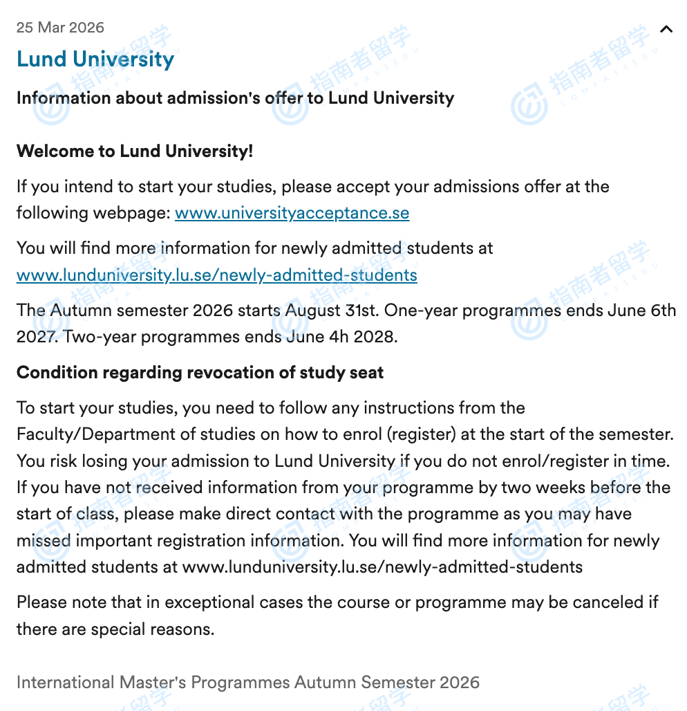 隆德大学食品技术与营养学理学硕士研究生offer一枚