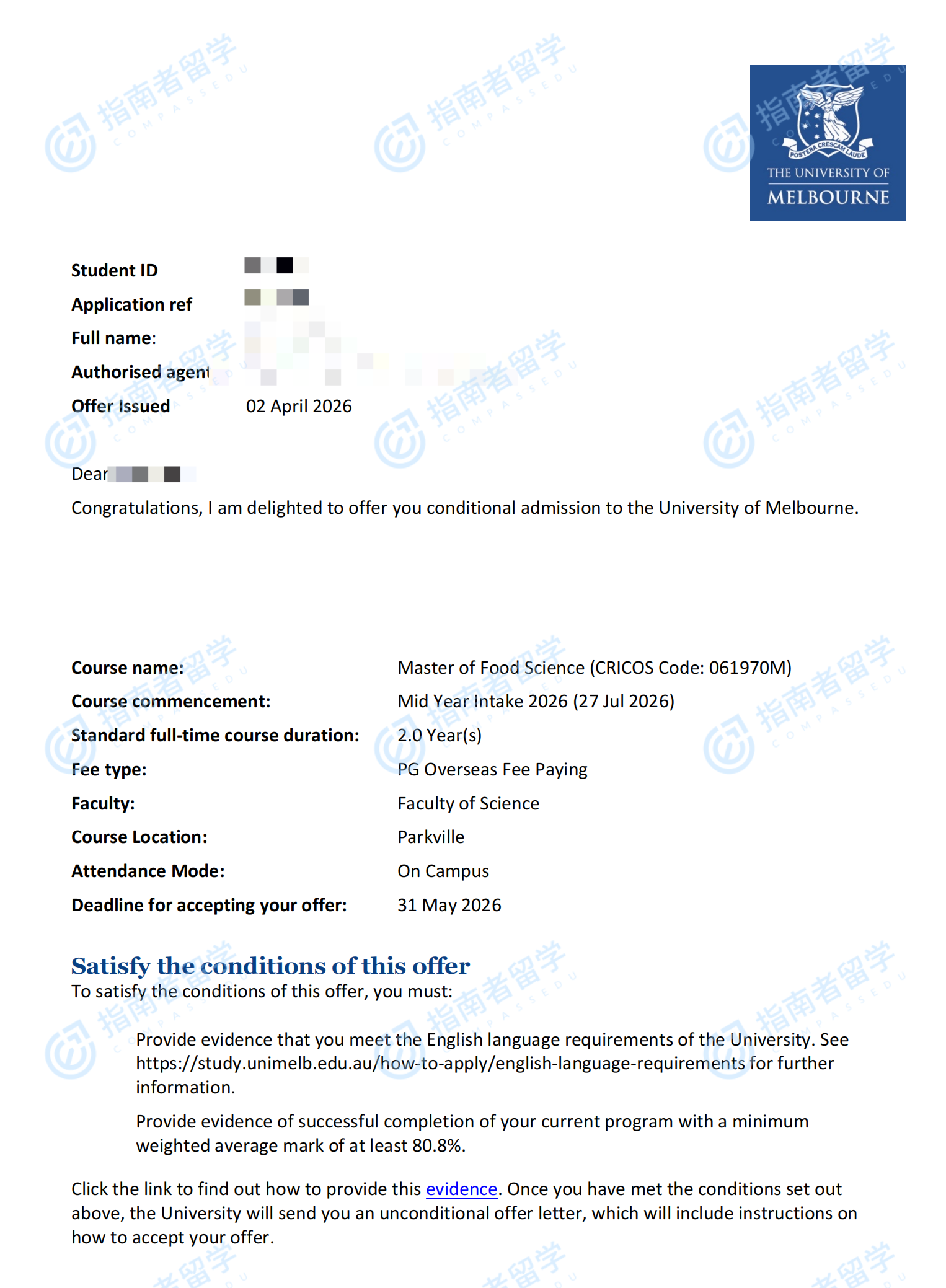 <p>墨尔本大学食品科学硕士项目使学生深入了解农产品如何成为安全营养又美味的食物进入本地和全球市场,以及这一供应链的所有环节。该项目的灵活高级课程帮助学生研究相关规章制度和国际贸易对食品生产行业的影响以及生物技术对食品生产的影响。学生将培养食品科学跨学科领域的先进知识和技能,包括了解影响澳大利亚及全球食品生产的环境、经济、社会和伦理因素;理解食品科学的最新创新和研究;规划并实施个人独立研究,交流研究成果;发现问题、解决和研究方法,并通过解决食品生产、供应和安全问题提升个人责任感;批判性地分析和评估研究数据以便理解并应用食品科学改良系统;寻求创新方法管理当代跨学科的商业食品系统;全面了解食品科学专业学科、新兴技术及其与未来食品行业的关联。学生将有机会与专家和非专业人士进行交流学习。</p>