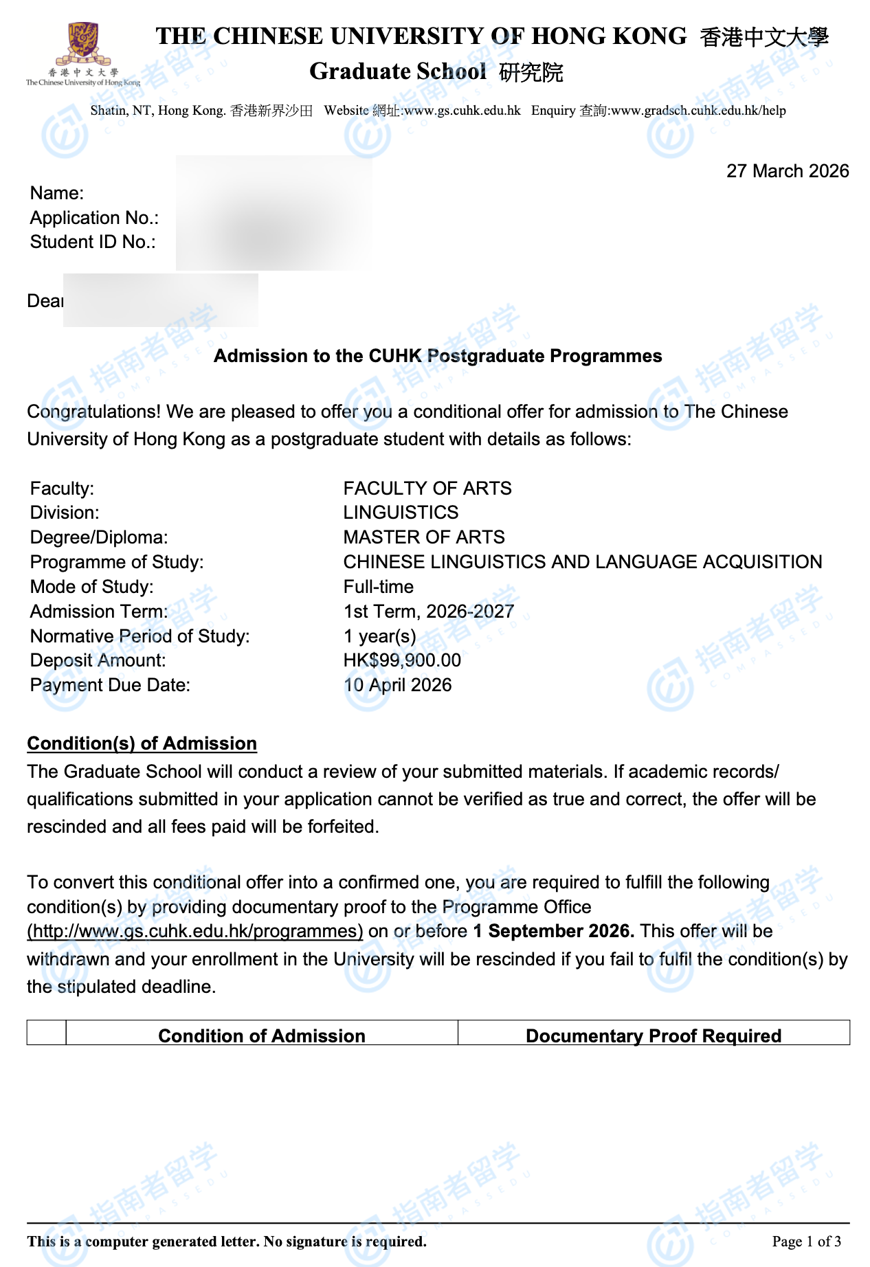 需要提供B等级证明,持有香港中文大学认可的大学本科荣誉学位或同等学历