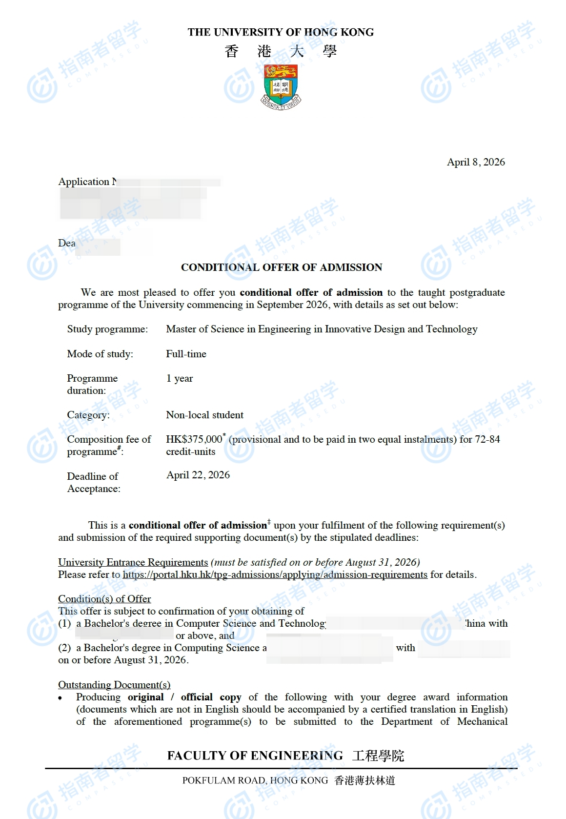 香港大学创新设计与科技(工程)理学硕士研究生offer一枚