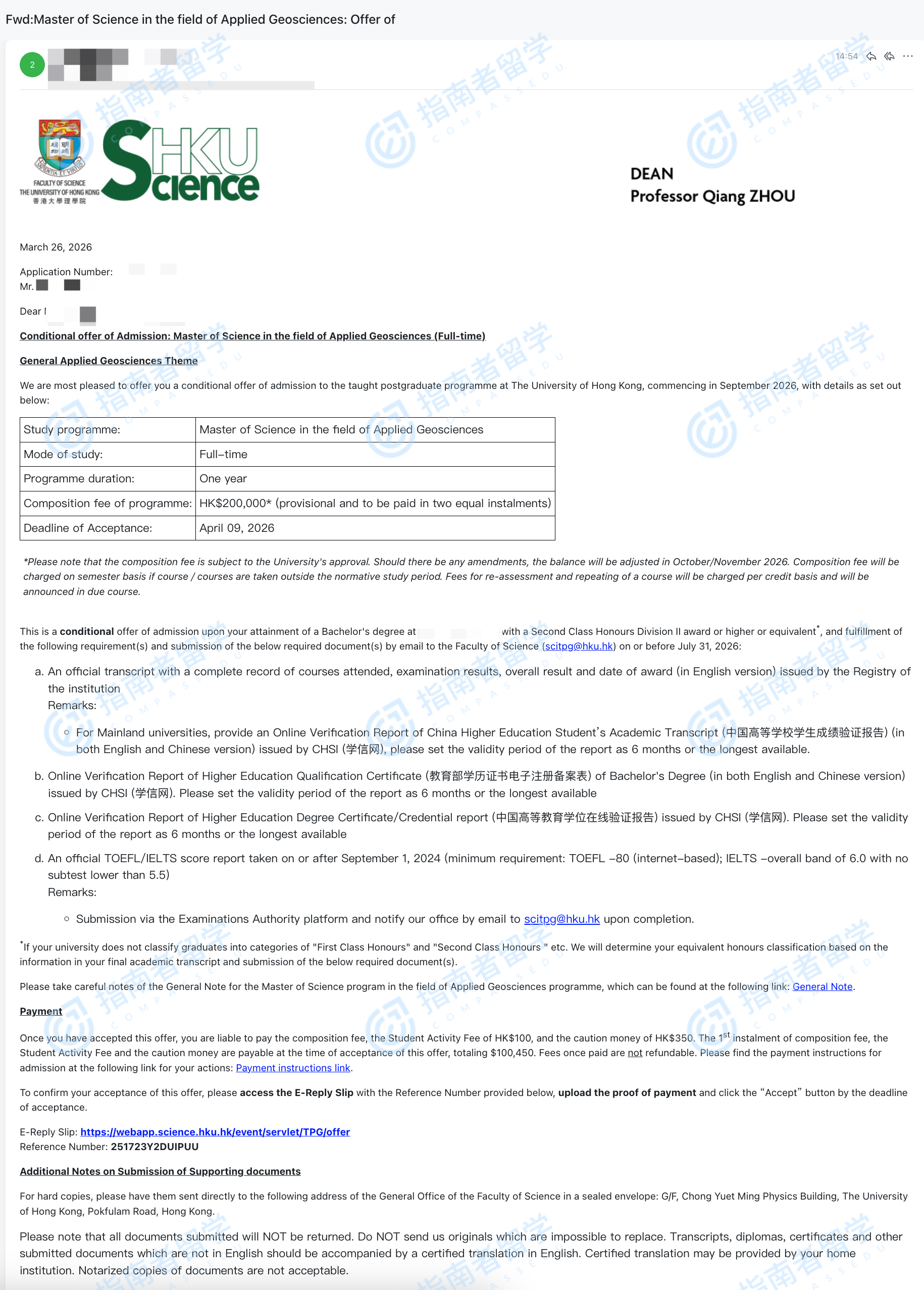 <p>香港大学应用地球科学硕士学位课程为本科毕业生们提供应用地球学领域的深造机会,有助于他们的职业生涯发展和个人发展。学生可以选择以下某一具体的研究领域进行深入学习:工程地理学、工程地理学(香港工程师协会认可课程)。所有的研究方向的课程都包含地质学原理与实践,地质学专业研究和专题研究论文三门核心课程。</p>
