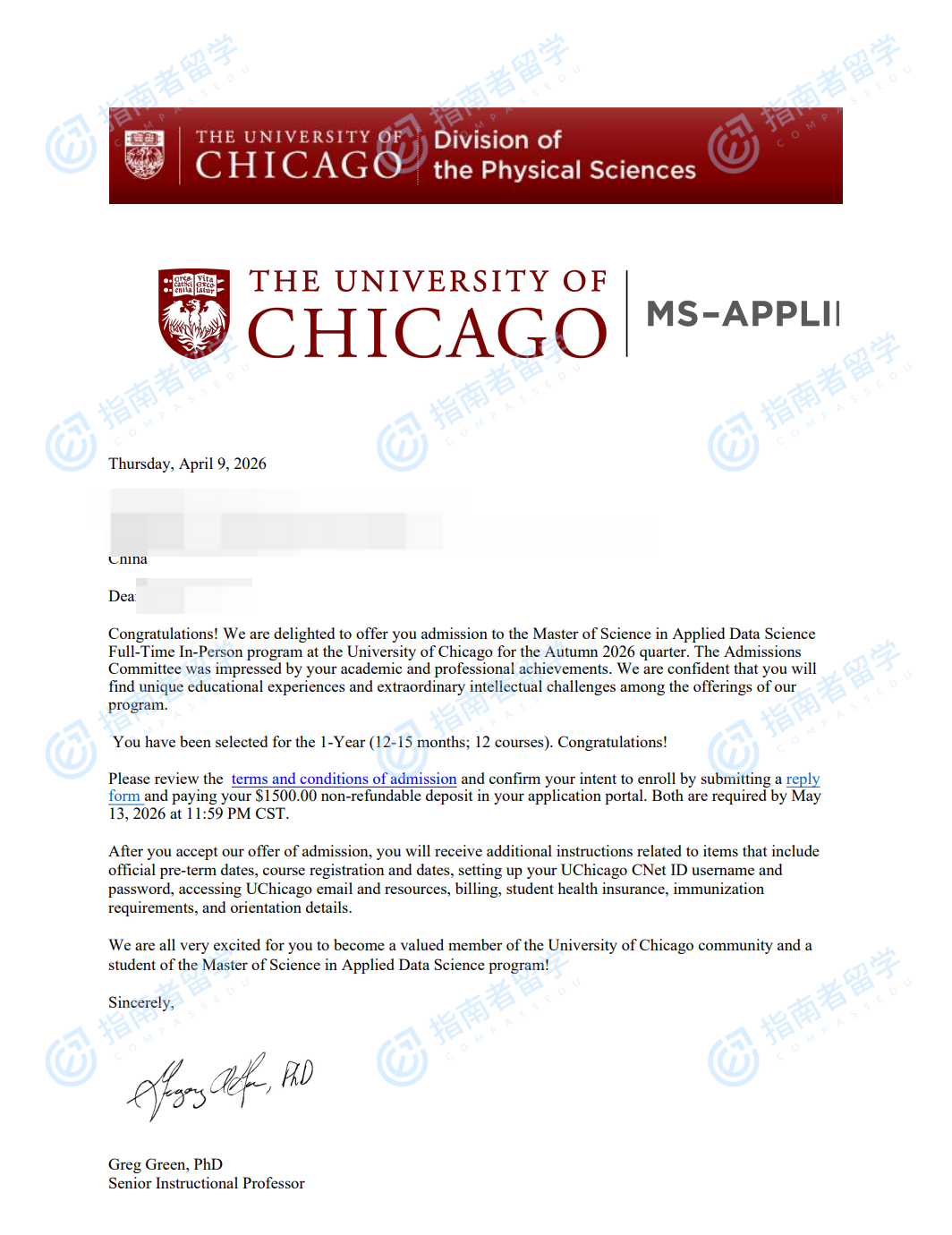 芝加哥大学应用数据科学硕士研究生offer一枚
