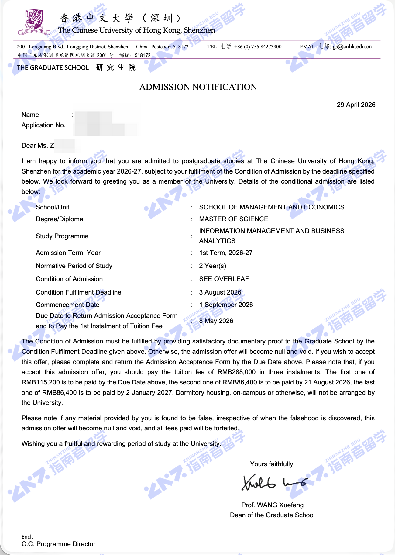 香港中文大学信息管理 & 商业分析理学硕士(CUHK-Shenzhen)研究生offer一枚
