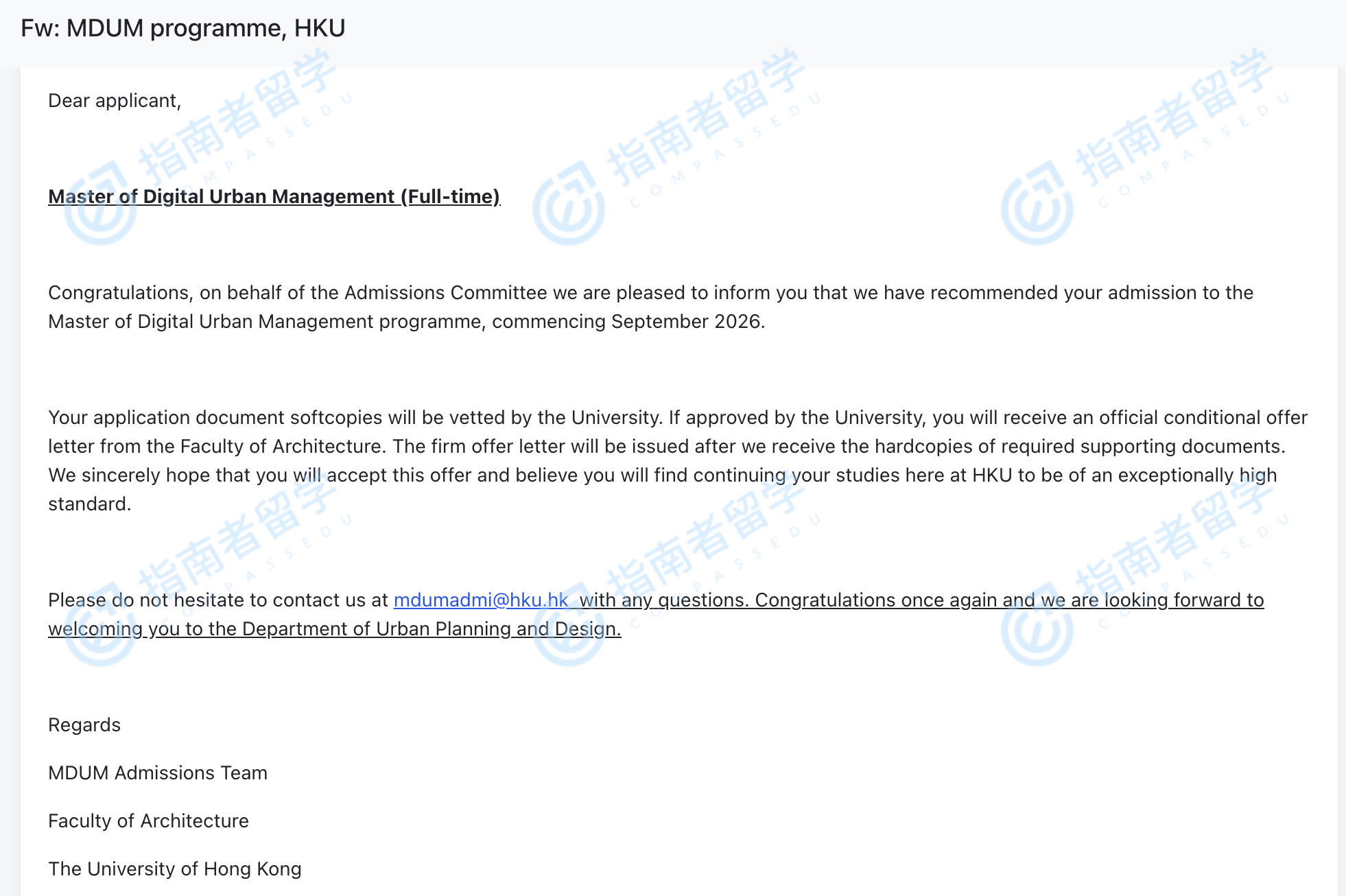 香港大学数字城市管理硕士研究生offer一枚