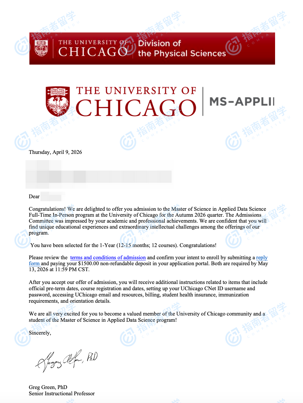 芝加哥大学应用数据科学硕士研究生offer一枚