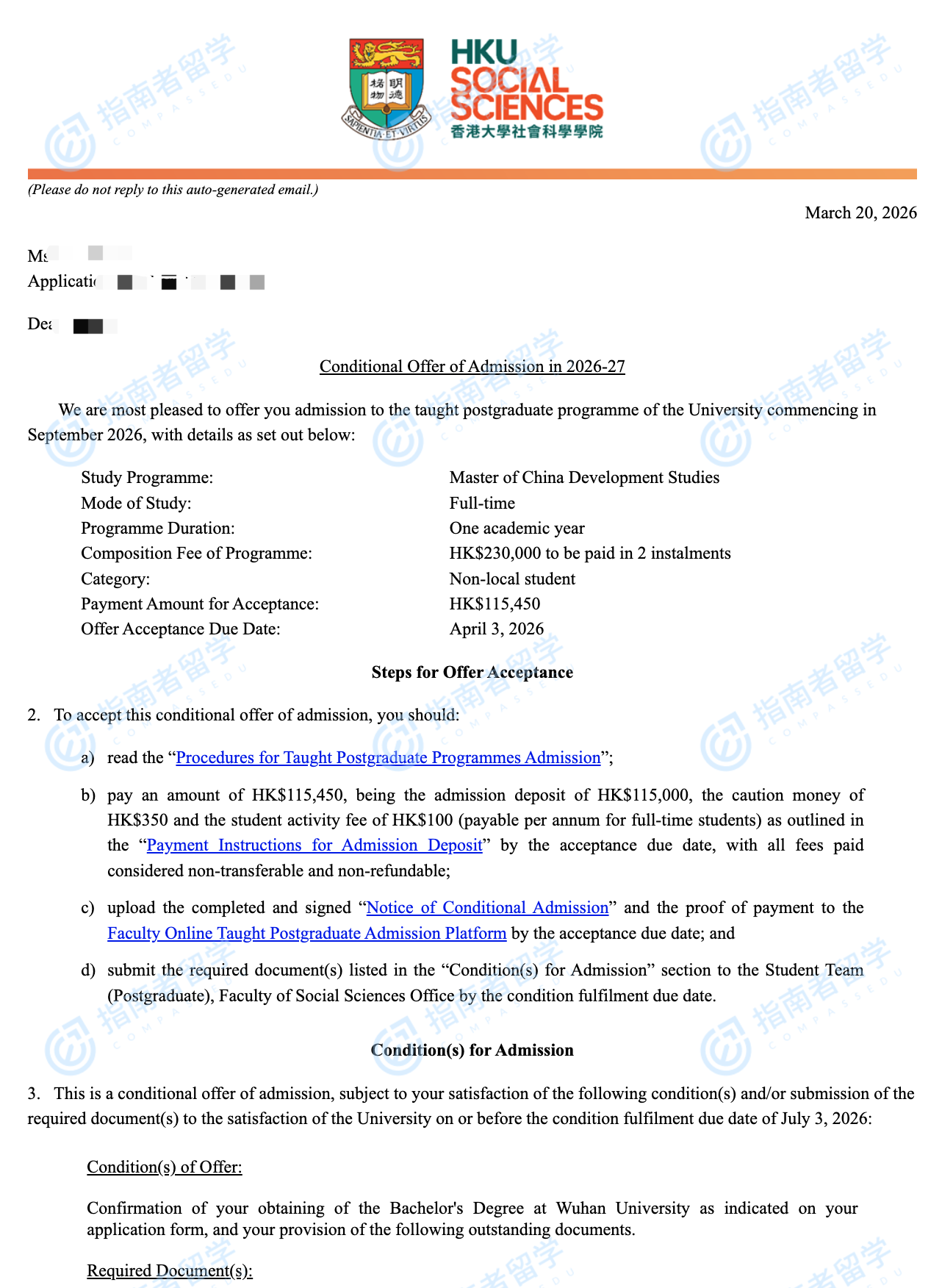 香港大学中国发展研究硕士研究生offer一枚