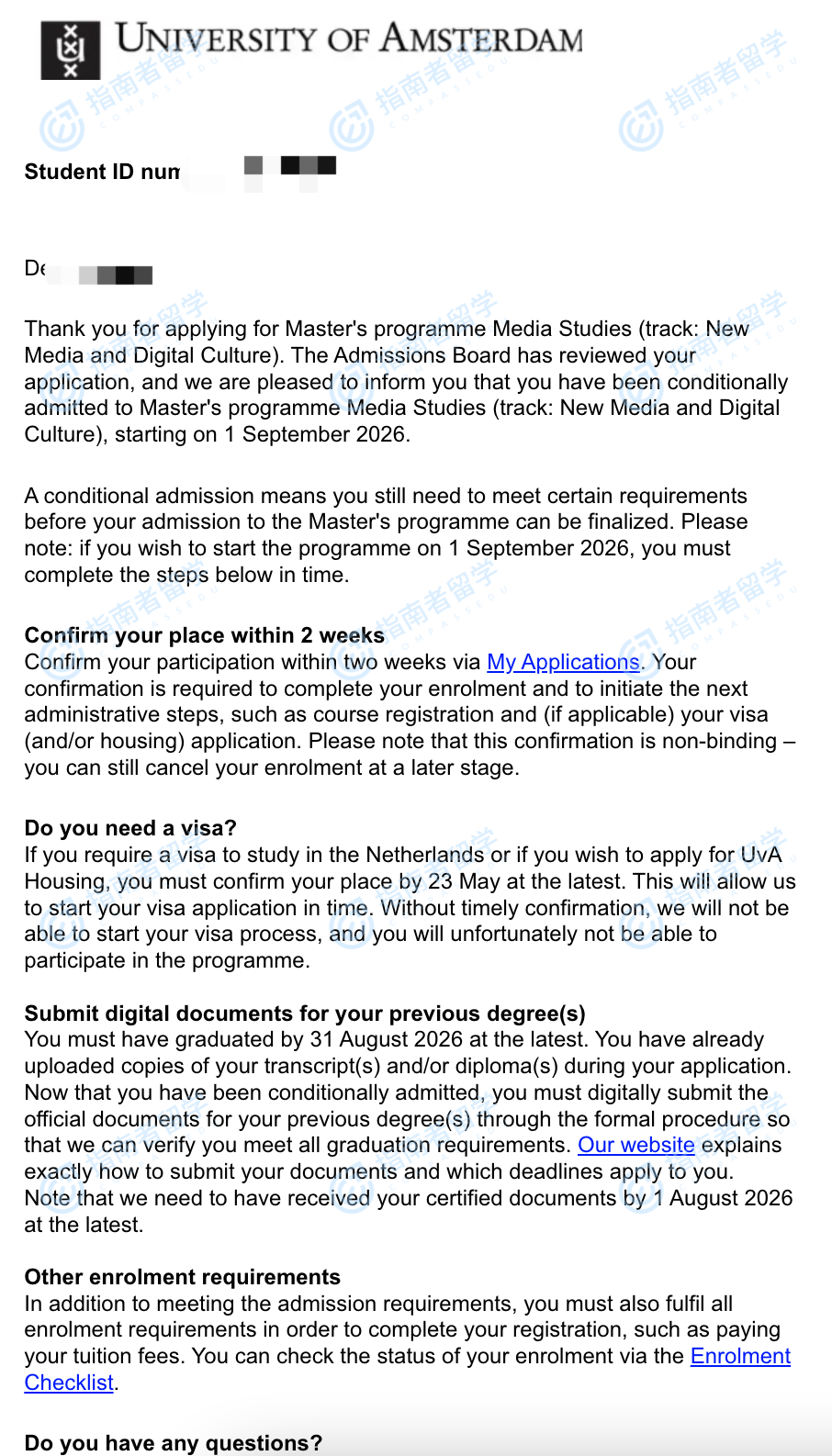 阿姆斯特丹大学新媒体与数字文化(媒体研究)文学硕士研究生offer一枚