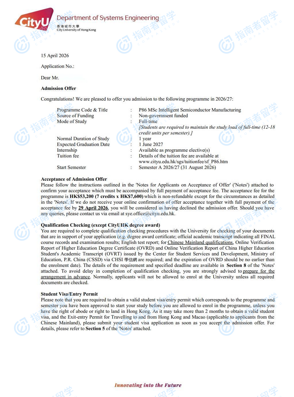 香港城市大学智能半导体制造理学硕士研究生offer一枚