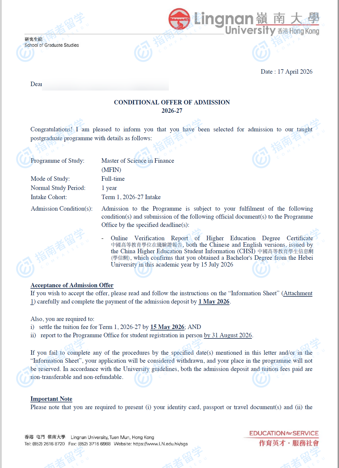- 持有认可的高等教育机构颁发的相关学士学位;或<br> - 已获得同等学历;或<br> - 能够提供令人满意的学术和专业成就证据。 GMAT或GRE成绩虽然不是必需的但将有助于决定是否被录取<br> 在学士学位中没有或只有有限的金融、会计和统计学背景的申请者将被要求在本课程开始之前通过以下预科课程:<br> 1. 财务管理(18小时)<br> 2. 统计学(24小时)