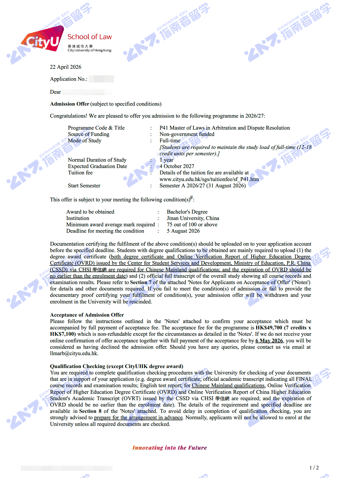 香港城市大学仲裁与争议解决法学硕士研究生offer一枚