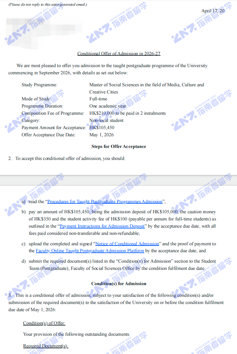 香港大学媒体、文化与创意城市社会科学硕士研究生offer一枚