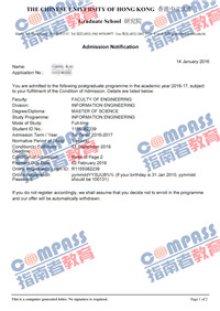 香港中文大学信息工程理学硕士研究生offer一枚