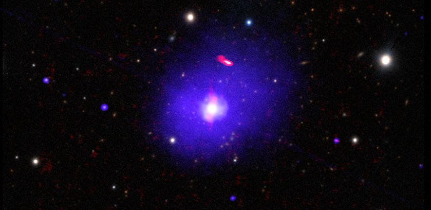 为了这个结果,研究人员观察到X射线从一个被称为H1821 + 643的类星体中围绕黑洞旋转的物质盘反弹。类星体包含快速增长的超大质量黑洞,这些黑洞在黑洞周围的小区域产生大量辐射。H1821+643的黑洞位于距离地球约34亿光年的星系团中,质量约为300亿至300亿太阳质量,是已知质量最大的黑洞之一。相比之下,我们银河系中心的超大质量黑洞重约四百万个太阳。