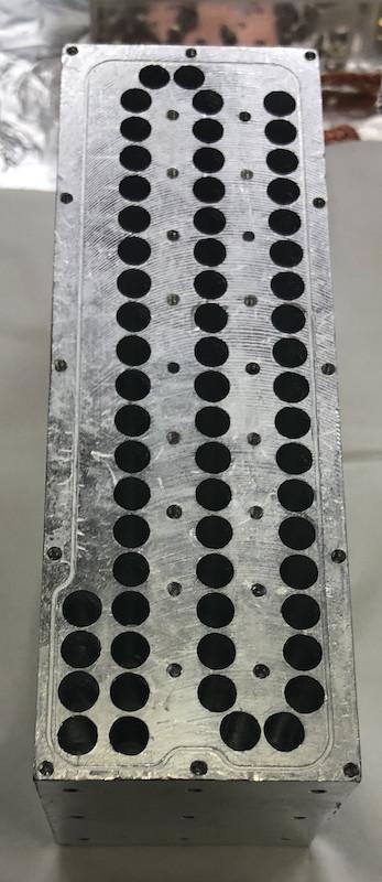 他们设计的系统由一个由单个金属块制成的长腔组成,旨在捕获微波频率的光子。腔体是通过钻偏移孔(如凹槽上的孔)制成的。