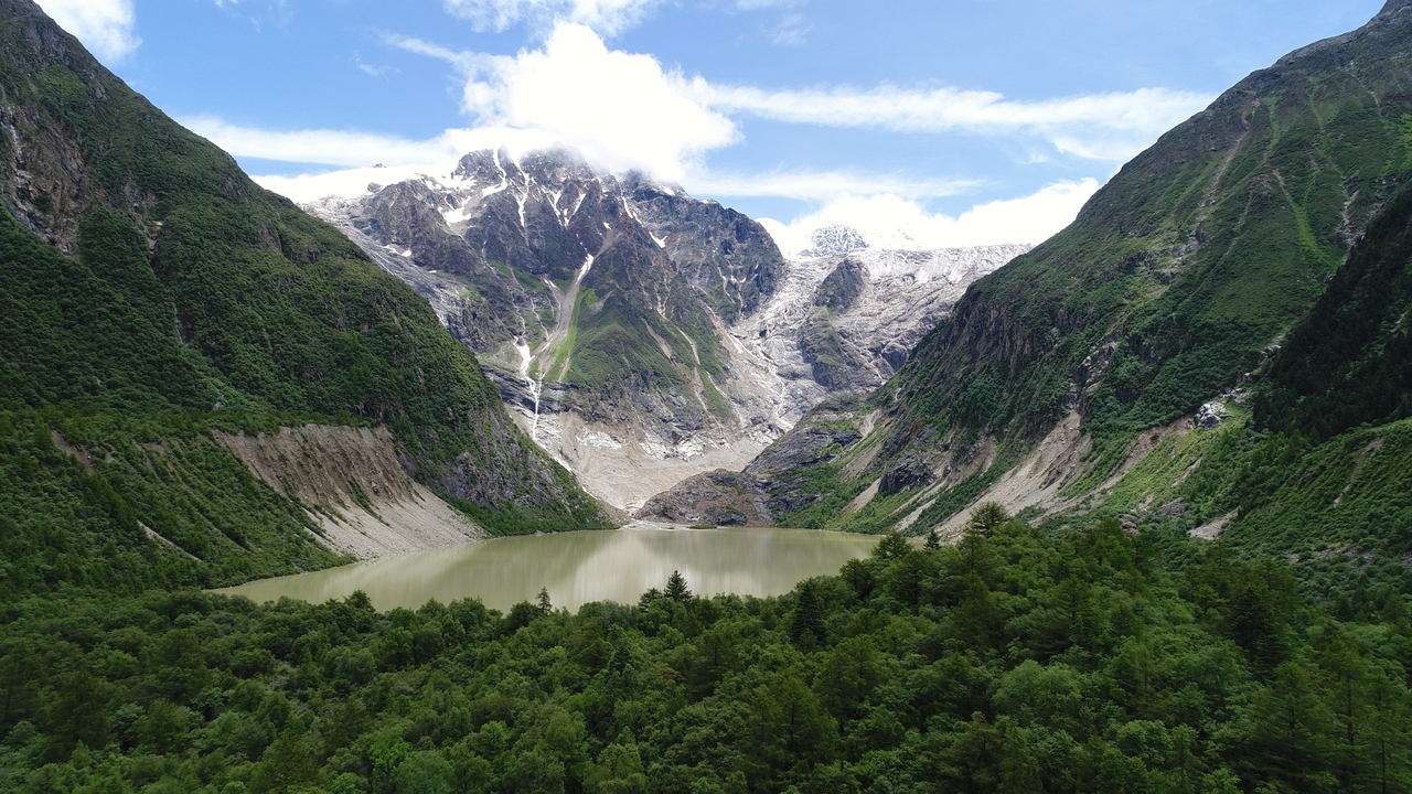 这是西藏东部的一个前冰湖。冰川湖泊可以在退缩的冰川前发展,容易引起爆发洪水,危及下游基础设施,包括水电站。(图片来源:李东风)