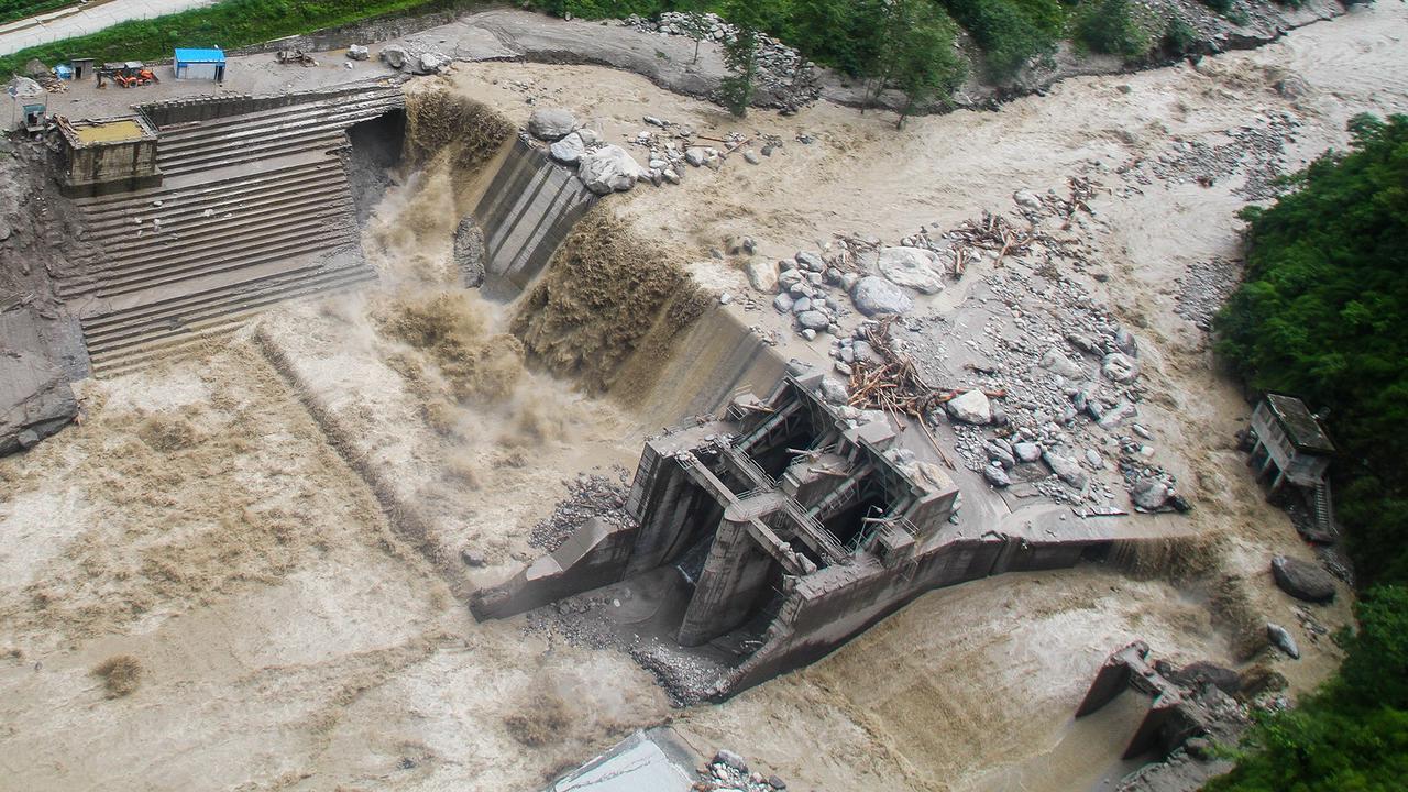 尼泊尔上博特甲石水电站的破坏是由2016年贡巴通沙冰川湖爆发洪水造成的。(图片来源:Bhote Koshi水电项目)